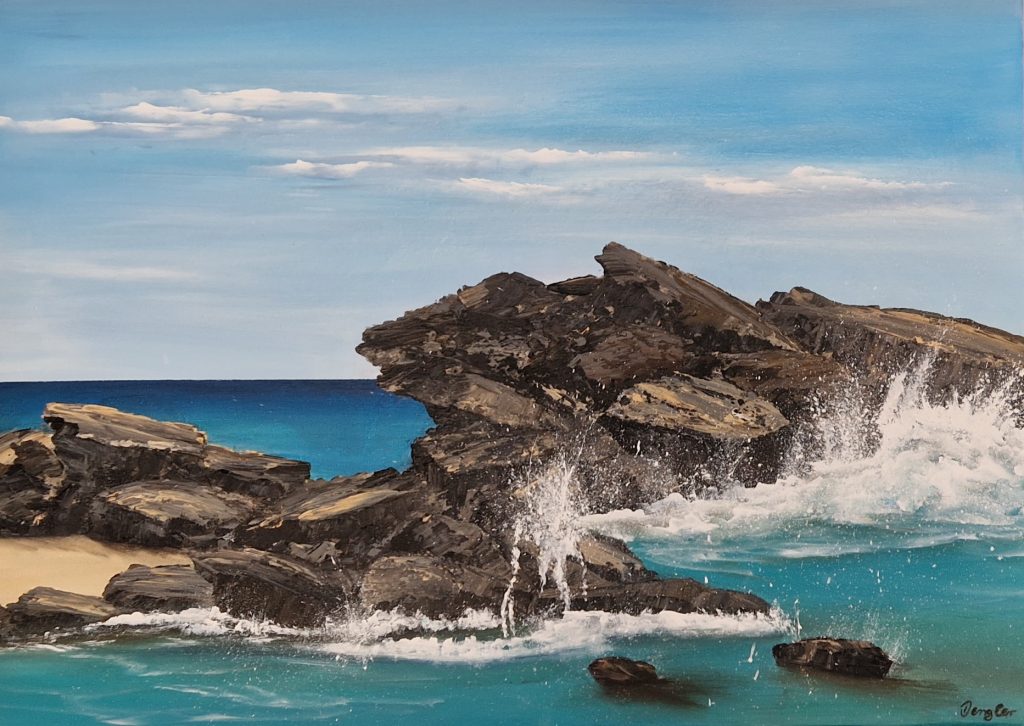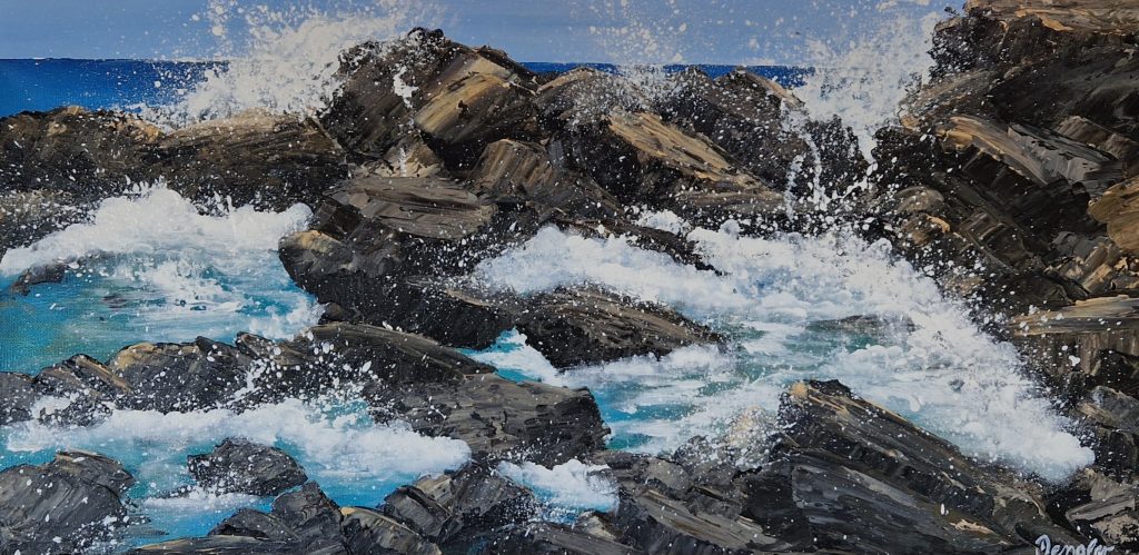 Sonnenuntergang Westküste 100 cm x 60 cm 360.- €Roque del Moro 100 cm x 60 cm 420.- €Die Welle II 90 cm x 60 cm 420.- € Die Kraft der Felsen IV 60 cm x 30 cm 190.-€ Naturgewalten II 70cm x 50 cm320.- € Naturgewalten III 60cm x 40 cm 220.- € Naturgewalten IIII 60 cm x 30 cm 190.-€ Die Kraft der Felsen I70 cm x 50 cm320.- € Sotavento Beach 62 cm x 31 cm 160.- € Die Kraft der Felsen II60 cm x 30 cm220.- € Fuerteventura Strand 80 cm x 54 cm 340.- € Fuerteventura Westküste II 88 cm x 31 cm 220.- € Die Kraft der Felsen III 32 cm x 32 cm 95.- €